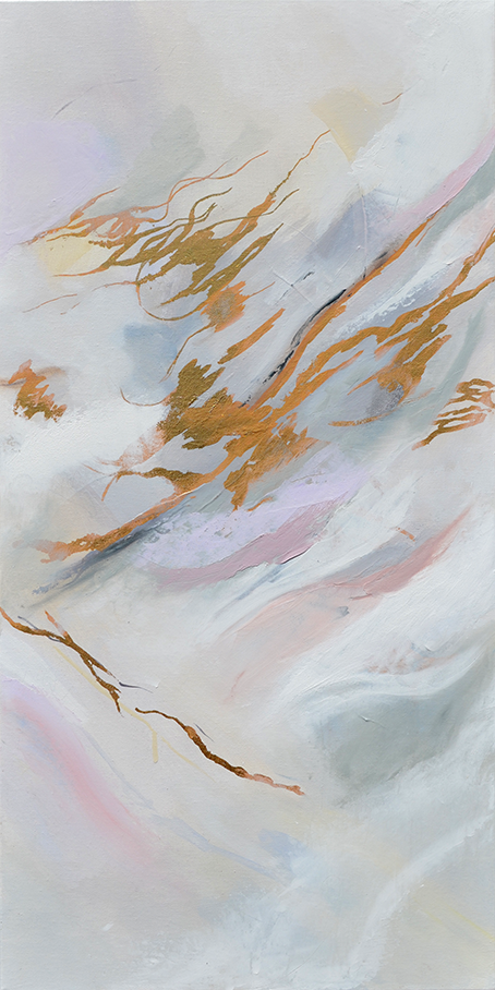In soft pastel colours with golden whispers and a dreamy flow, textured with the subtle touch of oils and wax.