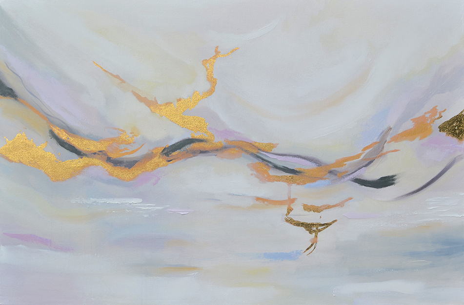 Soft hues with misty reflections and a tranquil flow, textured with the delicate touch of wax.